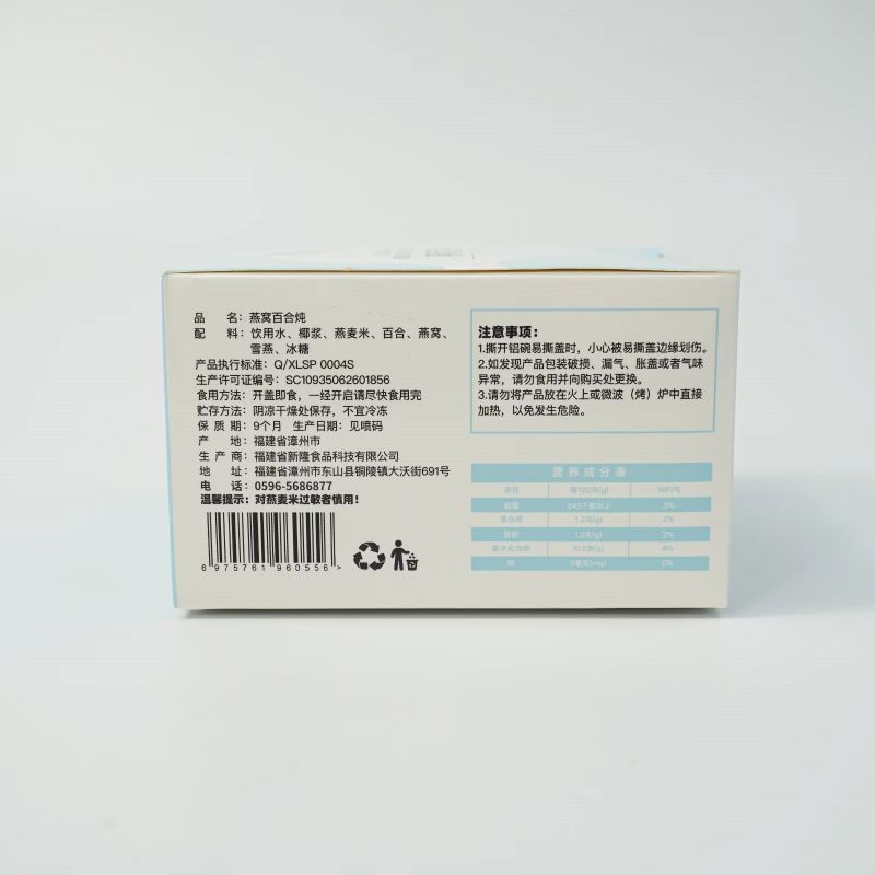 成分: 飲用水、椰奶、燕麥片、百合、燕窩、雪燕、冰糖